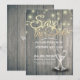 Spara datummallarna för bröllopsinbjudningskort - Elegant för skript, Vintage Champagne Glass och String Ljus på Rustic Wood Background. En Perfekt för din stora dag! Alla textstorlekar i Stil, Färg kan anpassas efter dina behov.