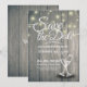 Spara datummallarna för bröllopsinbjudningskort - Elegant för skript, Vintage Champagne Glass och String Ljus på Rustic Wood Background. En Perfekt för din stora dag! Alla textstorlekar i Stil, Färg kan anpassas efter dina behov.