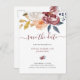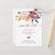 Denna moderiktiga nedgångbröllopnon-fotoet spara dateravykortet presenterar en blom- bukett för älskvärd vattenfärg, med blommor, och löv skuggar in av burgundy, persikan, blått grånar, vit och gultguld. Modernt skriva typografi tillfogar ett stilfullt handlag. Denna vykort är speciellt perfekt för burgundy, lantliga och höstbröllop.