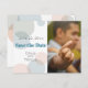 Bröllop spara datum | Vitaktiga genomskinliga konfettpunkter i skuggor av pastel sydvästra färg - sandig korall, cactus grönt och muted blue. Text är ett fet contemporary med roligt parvis med ett enkelt sans serif-teckensnitt. Lägg till foto på sidan - Anpassa text, teckensnitt stil, färg och storlekt. Originalteckningar skapat för BarefootBride™ av © WhimsicalArtwork™ - Detta ingår i en komplett Bröllop Stationery Suite med matchande bröllop, babydusch och andra händelsematerial.
