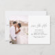Bröllop spara datum-kort som har ett foto på framsidan och baksidan. Spara datumkorten innehåller en modern handskriven kursiv skripttypografi som är elegant, enkel och modern till använda efter att du har minimalistisk enkel bröllopsdag firande.