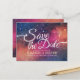 Spara Datum Bröllopsinbjudan Postkortsmallar - Praktfull Nattlig Stjärnhimmel Färgrik Nebulosa Kosmisk Rymd Galaxy med Konstellationer.