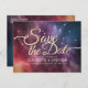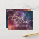 Spara Datum Bröllopsinbjudan Postkortsmallar - Praktfull Natt Stjärnhimmel Färgrik Nebulosa Kosmisk Rymd Galaxy med Konstellationer.