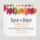Skicka "Spara datum"-meddelandet för hösten bröllop med ett överst gräns av färglöst höst löv på en sträng. Anpassa fälten i mallen eller klicka på Anpassa för att välja ett teckensnitt stil, storlekt och färg som du vill använda.