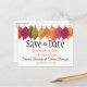 Skicka "Spara datum"-meddelandet för hösten bröllop med ett överst gräns av färglöst höst löv på en sträng. Anpassa text fram och tillbaka i mallen fält eller klicka på Anpassa för att välja ett teckensnitt stil, storlekt och färg som du vill använda.