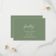 Gratulerar till det efterlängtade ögonblicket med den här eleganten, "Slutligen!", spara datumkortet. Med ett vitt skript i snyggten parat med ren serif-typografi på en skarp sidbakgrund i grönten är den här moderna designen perfekt för par som vill behålla sak enkel, tidlös och chic. Anpassa den med namn, datum och plats för bröllop. En formell inbjudan kommer att följa - det här kortet anger tonen för ett klassiskt och oförglömligt firande.