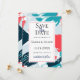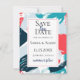 Modern abstrakt målar upp penseldrag i briljant karibiskt korall, turkos och blått, bröllop spara datum-kort. Anpassa teckensnittet stil, färg och storlekt.