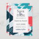 Modern abstrakt målar upp penseldrag i briljant karibiskt korall, turkos och blått, bröllop spara datum-kort. Anpassa teckensnittet stil, färg och storlekt.