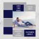 Blåblått och silver grått färg-blockkort för bröllop spara datum. På baksidan finns ett mönster med breda band i blått och silver grått.