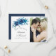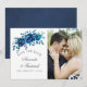 Tunga indigo- och vita bröllop spara datum-fotokort av blommigt designade för att snabbt och enkelt kunna anpassas till dina händelsespecifikationer.