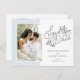 Bröllop spara datum Photo Script Botanical Blue Vykort