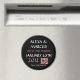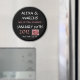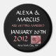 Runda magnet - bröllop spara datum magnet. Den här designen är med svart bakgrund, men du kan ändra bakgrunden färg till kostym till din personliga smak. Anpassa med din information.