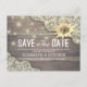 Spara dokumentkortsmallarna för inbjudan till bröllop - Vintage Snöre, Solros och String Ljus på bakgrunden för Rustic Wood. En Perfekt för din stora dag! Alla textstorlekar i Stil, Färg kan anpassas efter dina behov.