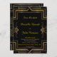 Bröllop Spara Datum svart & guld, stor-Gatsby, dubbelsidig, monogram-bak, typsnitt handstil