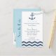 Det här vykortet i bröllop spara datum har en nautisk design i blå nyans. Ett chevron zigzag-hav dyker upp längs grund och ett ankare med en hjärtkedja kastas ut i havet. Alla dina sparade uppgifter visas mellan ankaret och havet för att göra en roligt och spara datumet bröllop vykort. Copyright henishouseofpaper
