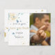 Bröllop spara datum | Boho chic vattencolor stänks in blue och guld Add Your Photo on the side - Customize text, font stil, färg och storlek. Originalteckningar skapat för BarefootBride™ av © WhimsicalArtwork™ - Detta ingår i en komplett Bröllop Stationery Suite med matchande bröllop, babydusch och andra händelsematerial.