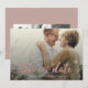 Elegant bröllop Spara datumfotokortet som innehåller rosa, konfirmationspunkter, framfoto med fullt och tre (3) baksida av bilder, mot gammal rosa. Anpassa enkelt din egen text, bilder och färg.