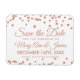 Elegant bröllop "Spara datum"-design med Ro Guld Faux Glitter Konfetti vit och egna namn och datumtext.