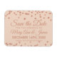 Elegant bröllop "Spara datum"-design med Ro Guld Faux Glitter Konfetti Rosa och anpassade namn och datumtext.