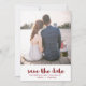 Enkelt och chic bröllop spara datum-kort med söt svartpolka prick och röd penselskripttypografi. Lägg bara till namn och favoritfoto för att göra den här klassiska designen till din egen.