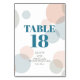 Bröllop Bordsnummer Card | Modern stora genomskinliga konfettpunkter i skuggor av pastellerna sydvästra färg - sandig korall, cactus grönt och mutad blå färg. Skrivna i ett fet contemporary med roligt parad med ett enkelt sans serif-teckensnitt. Omvänd är samma sak. Anpassa text, teckensnitt stil, färg och storlekt. Originalmålade teckningar skapat för BarefootBride™ av © WhimsicalArtwork™ - Detta ingår i en komplett Bröllop Stationery Suite med matchande bröllop, babydusch och andra händelsematerial. #whimsical #bröllop #konetti #bold #tableNumber