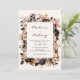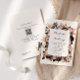 Elegant och dyster rosabränd svart och guldblommig ram bröllopsinbjudan med QR-kod och mer detaljerad information på baksidan.