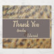 På dessa flaska-etiketter i bröllop finns ett foto av honfjädrar från anka. Den vackra guld och mörk bruna fläckiga fjädringskurvan och flödar lodrätt på denna enkla till använda flaska-etikett. En solid tan- och grått-banderoll i mitten ger bakgrunden till bruden och brudgummen namn och ord "tack". All text kan snabbt vara personlig.
