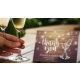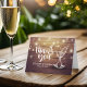Bröllop tackar dig för dina kortmallar - Elegant med skript, Vintage Champagne Glass och String Ljus på Rustic Wood Background. En Perfekt för din stora dag! Alla textstorlekar i Stil, Färg kan anpassas efter dina behov.