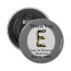 Anpassa denna flaska-öppnare som har ett monogram för elegant brev E. Den stora inledande E:n har färg i guld och svart i ett vintage antika stil. Brev förekommer i en lätt grått oval. Bron- och brudgummens datum namn och bröllop står vid grund i denna runda magnet tillsammans med ord "tack". Snabb och lätt personlig anpassning för att skapa en sorts bröllopsförmån för dina gäster.