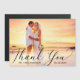 Tack till gästerna i bröllop i stil med det här fotot på personligen i elegant tack vare det magnetiska kortet. Den här chicens designmall innehåller ditt bröllop-foto på framsidan med ett överlägg av en modern skripttypografi som läser "Tack" med ditt namn och datum för anpassning. Jag tyckte om att skapa det här åt dig. Bästa önskemål på giftermål. Designad av konstnären Susan Coffey.