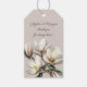 Bröllop sliter på tacket när du säger att du föredrar taggar. Rosa-beige färg med en stam av vita magnolia blommor och ställe för ert anpassningsbar till gästerna. Exempelformuleringen är namn och "tack för att du är här". Märkrna har färg-val av twine och är grått-grönt på baksidan med en annan blombild. Bröllopet gynnar eller förändrar ordalydelsen och användan som vardagliga märkre.