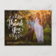 "Tack" i en handskriven stil med utsmyckningar och hjärtan i vitt överlagda på ditt horisontella foto. Matchar typsnittsdesignen för "Spara datumet" och "Spara vårt datum" (i samlingen Spara datumet). På baksidan matchar teckensnittet "Tack" den "med kärlek" som står längst ned. Anpassa genom att lägga till dina detaljer, tackmeddelande och horisontellt framsidefoto. Använd exempelmeddelandet eller skriv ditt eget meddelande. Detta djärva men eleganta tackkort är perfekt för bröllop, examina och