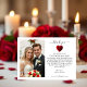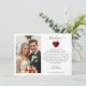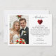 Dela din tacksamhet och dina minnen med vårt tackkort i form av ett hjärta med röda rosor. Denna design fångar perfekt värmen och romantiken i din moderna och eleganta fest. Inkludera ditt favoritbröllopsfoto, ett hjärtligt meddelande och din webbplats så att dina gäster kan återuppleva magin. Det är ett hjärtligt sätt att säga tack samtidigt som du delar de ögonblick som gjorde din dag oförglömlig. Perfekt för moderna bröllop, passar detta kort vackert med hela Red Roses bröllopssamling för en sammanhängande och meningsfull avslutning på din fest.
