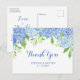 Bröllop Tack Hydrangea Blue Watercolor Blommigt Vykort