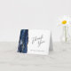 Den lämnat kant på det här eleganten platta tackkortet bröllop har en marin blå vattenfärgsagatdesign som trimmas med guld faux glitter. Texten är skript i guld-färgad och sans serif typsnitt på vit bakgrund.