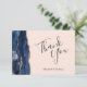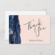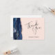 Den här eleganten är ett modernt bröllop-tack som du har med ett marint blåfärgat gräns som trimmas med faux ro guld glitter. Anpassadet kombinerar ord "Tack" i handskriftsskript för kol-grått och namnen för bruden och groomen i kursivt teckensnitt på rosa. Lägg till ditt eget personliga meddelande på den tomma baksidan.