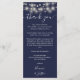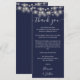 En elegant marinblå bröllopsfirande tack mottagning kort med fina strängljus. Personliggjord med ditt speciella tackmeddelande i stilfull typografi. En speciell souvenir tack till era gäster. Designad av Thisisnotme