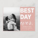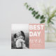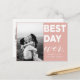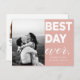 Säg tack med det här moderna "Bästa dagen någonsin"-vykortet för Bröllop Tack. Med vit text i färgadens bakgrund. Det här två-fototackkortet kan användas för en mängd "bästa dagen någonsin"-evenemang som bröllop, möhippa, babyduschar, födslar och studenten. Anpassa genom att lägga till dina favoritfoton.Anpassa bakgrunden till färg genom att klicka på "anpassa ytterligare"
