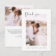 Tack, bröllop, ni kort som har ett foto på framsidan och baksidan. Tack-korten innehåller en modern handskriven kursiv skripttypografi som är elegant, enkel och modern till använda efter att du minimalistiskt enkelt bröllopsdag firande.