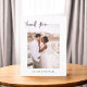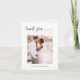 Tack, bröllop, ni kort som har ett foto på framsidan och baksidan. Tack-korten innehåller en modern handskriven kursiv skripttypografi som är elegant, enkel och modern till använda efter att du minimalistiskt enkelt bröllopsdag firande.