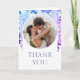 Bröllop Tack Photo Watercolor Wisteria Blommigt Card har ditt favoritfoto med texten "Tack" i det moderna lila skripttypografin accentuerad med vattenfärgsblåa, lila och lavender wisteria-blommor. På insidan lägger du till ytterligare ett foto med personligen. Del av en samling designad av Evco Studio www.zazzle.com/store/evcostudio