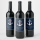 Bröllop vin flaska tackar för att du har klisterlappar i en marin blå marktäckning med hjärtad ankardesign som kan anpassas med ditt budskap till gästerna i bröllop. Lägg till datum för namn och bröllop.