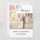 Ett modernt bröllop Tack-fotokort. En vit bakgrund som dekorerats med ro guld, blommigtar för rosa, blommor (rosor) och grönt vattenfärgade eukalyptus löv, sprit, grönsaks- och faux guld-sprig. Anpassa och lägg till ditt foto och tackkort.