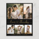 Budget, Elegant, Modern, Elegant Heart-teckensnittsskript Bröllop 5 Photo Collage (fotokollage) - prisvärt tack, ditt kort i Black and Guld. Snyggt, minimalistisk bröllop-kortmall med fem (5) rasterfotokollage på framsidan och ett (1) foto på baksidan. "Kärlek och tack" text i ett kursivt, handskrivet kalligrafiskt, sött hjärtteckensnittsskript med dekorerat svan. Anpassa med ditt namn och tack för meddelandet. Om du behöver hjälp eller matcha objekt kontaktar du designern!