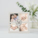 Lägg till fyra foton och monogram bokstav på framsidan av det eleganta tack-kortet med krans och linneffekten bakgrund. På baksidan "Tack" är skrivet i en elegant virvlade svart manus ovanför ett personligt meddelande till dina bröllop gäster som kan anpassas. Också "med vår kärlek" är i samma manus lägg till era namn nedan.