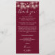 En elegant burgunder bröllopsfirande tack mottagningskort med fina strängljus. Personliggjort med ditt speciella tackmeddelande i stilfull typografi. En speciell tacksamhet till dina gäster. Designad av Thisisnotme©