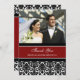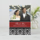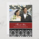Anpassade bröllopsfotots tackkort för gåvor i elegant rött, svart och vitt klassiskt blomdamastmönster. Helt anpassningsbara, tvåsidiga, tillgängliga i många matchande produkter för alla dina bröllops- eller festbehov. Kontakta oss för att begära en färgändring eller anpassad design.