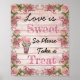Koral rosa rosa vintage ro blommigt (Kärlek är sötat), så ta ett Bröllop-tecken för Candy Buffet, Rosa & Butterflies-skylt för ett godis pub vid en bröllop- eller babydusch.
