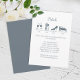 Tidslinje bröllop med bröllop närmare uppgifter om samordning av inbjudan till bröllop om dammig blå hydrangea. Ett trevligt sätt att lägga till information om bröllop, till exempel logi, bröllop webbplats och mycket annat. Med enkel calligrafi av eleganten. Kortet för information om djurutrymmet innehöll en tidslinje för anpassadet med cocktailglas, silvergods för middag, en danssko och en gammaldags bil för Goodnight.