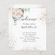 Vit bakgrund i eleganten, dekorerad med vit vattenfärgad blommigt, eukalyptus grenery, guldblad och faux glitter damm från guld. Anpassa och lägga till namn och tidslinjen för bröllopsdagen.